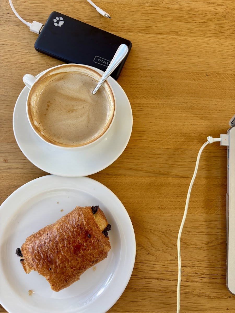 The coffee was good, the croissant was amazing, filled with jam or chocolate. Good atmosphere and they roast the beans on the spot! Self service... and long waiting line which was bit slow.