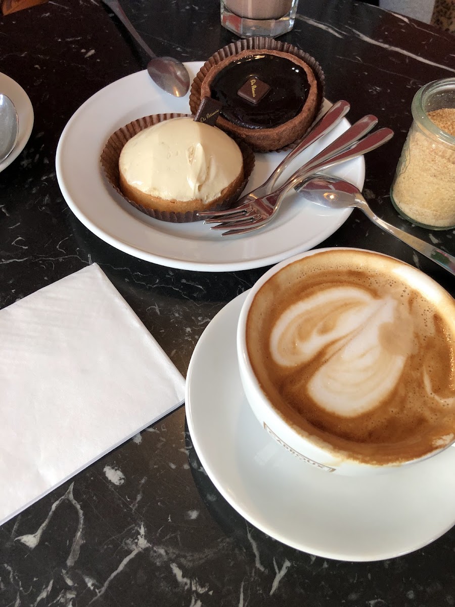 Very good coffee with pastries. Aromatic place. They have upstairs, downstairs and outside space for coffee. A very big place. Atmosphere is great, the service is great. Definately worth going back.
